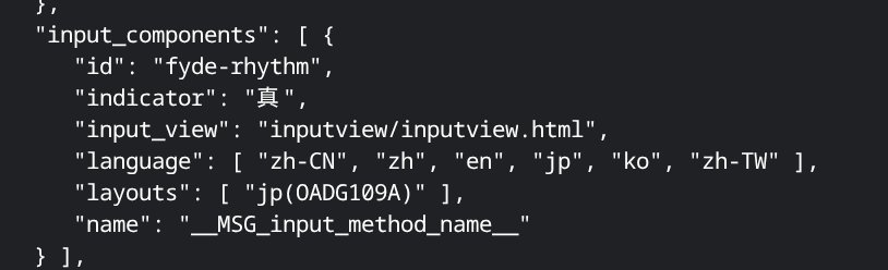 - 是不是修改输入法会好呢?想到了fydeos开源的真文韵输入法,于是下载了一份到本地,看到manifest.json中的input_components部分有一个